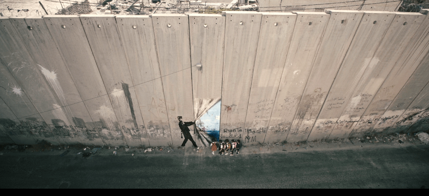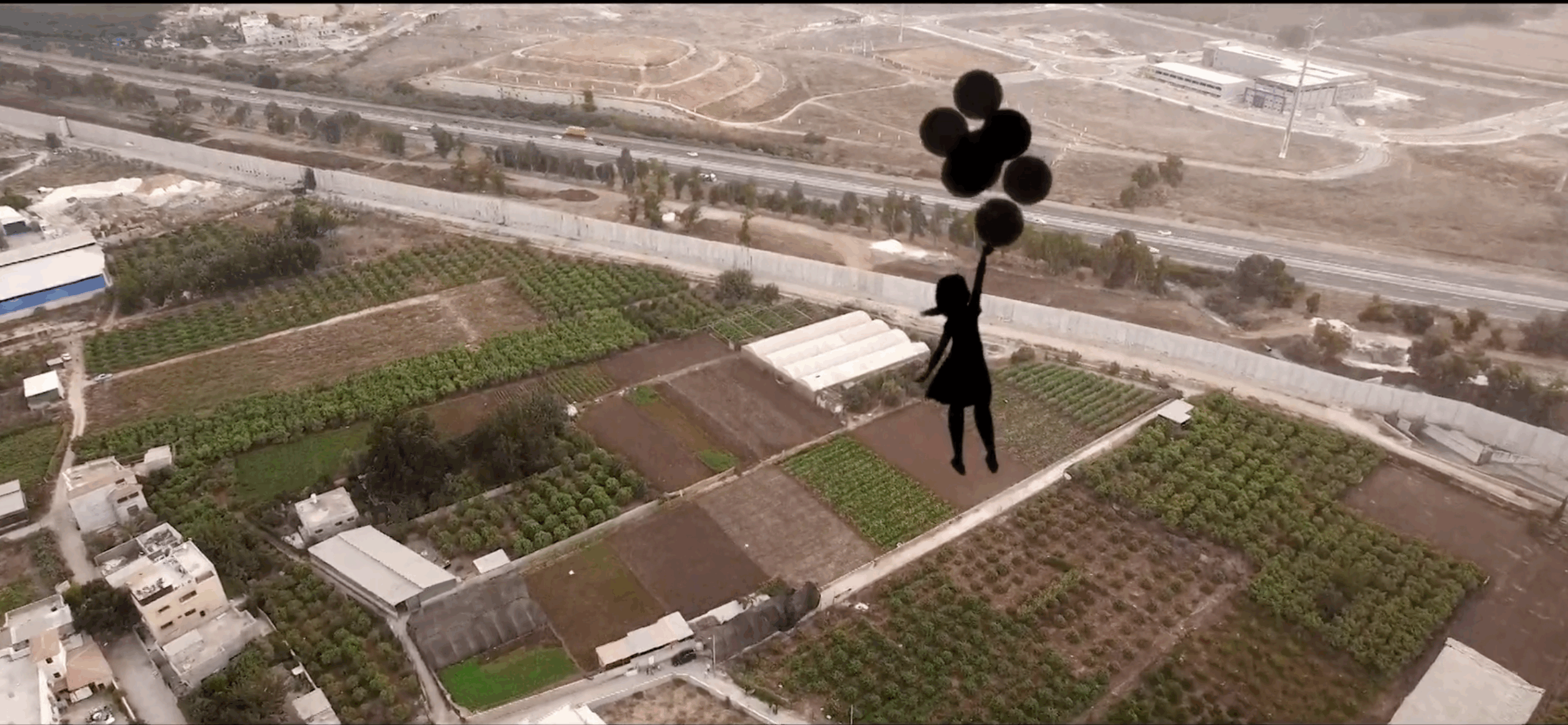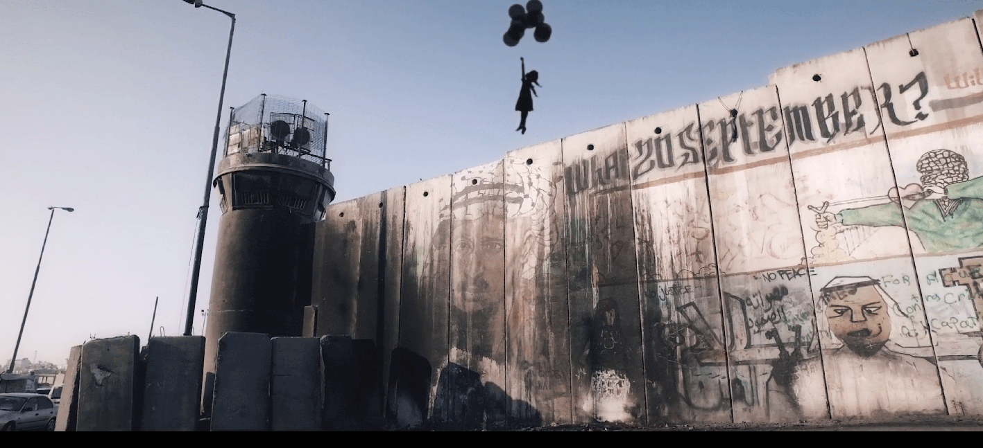 The daily journey the balloon girl takes, witnessing the effects of the apartheid wall, as it separates children from their schools, families from each other and people from their land.