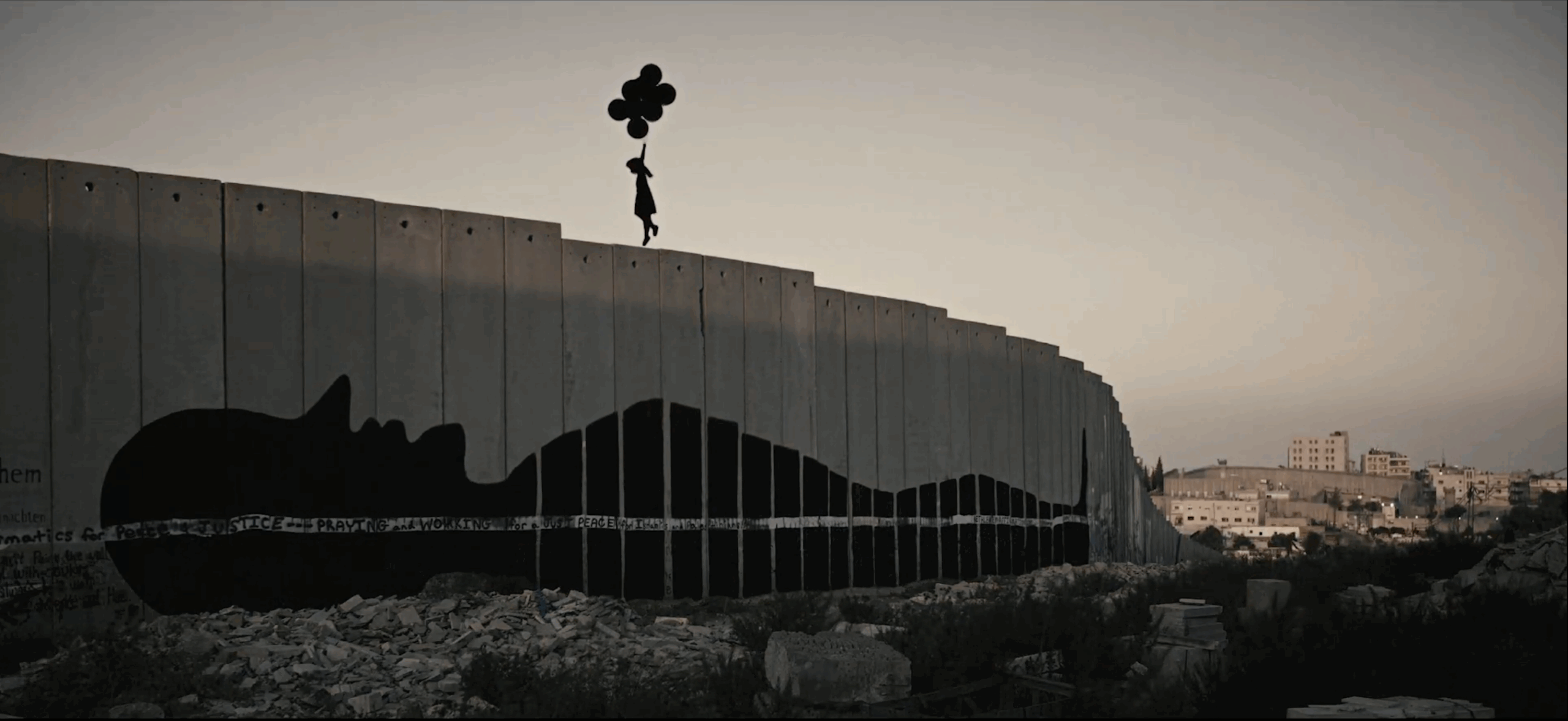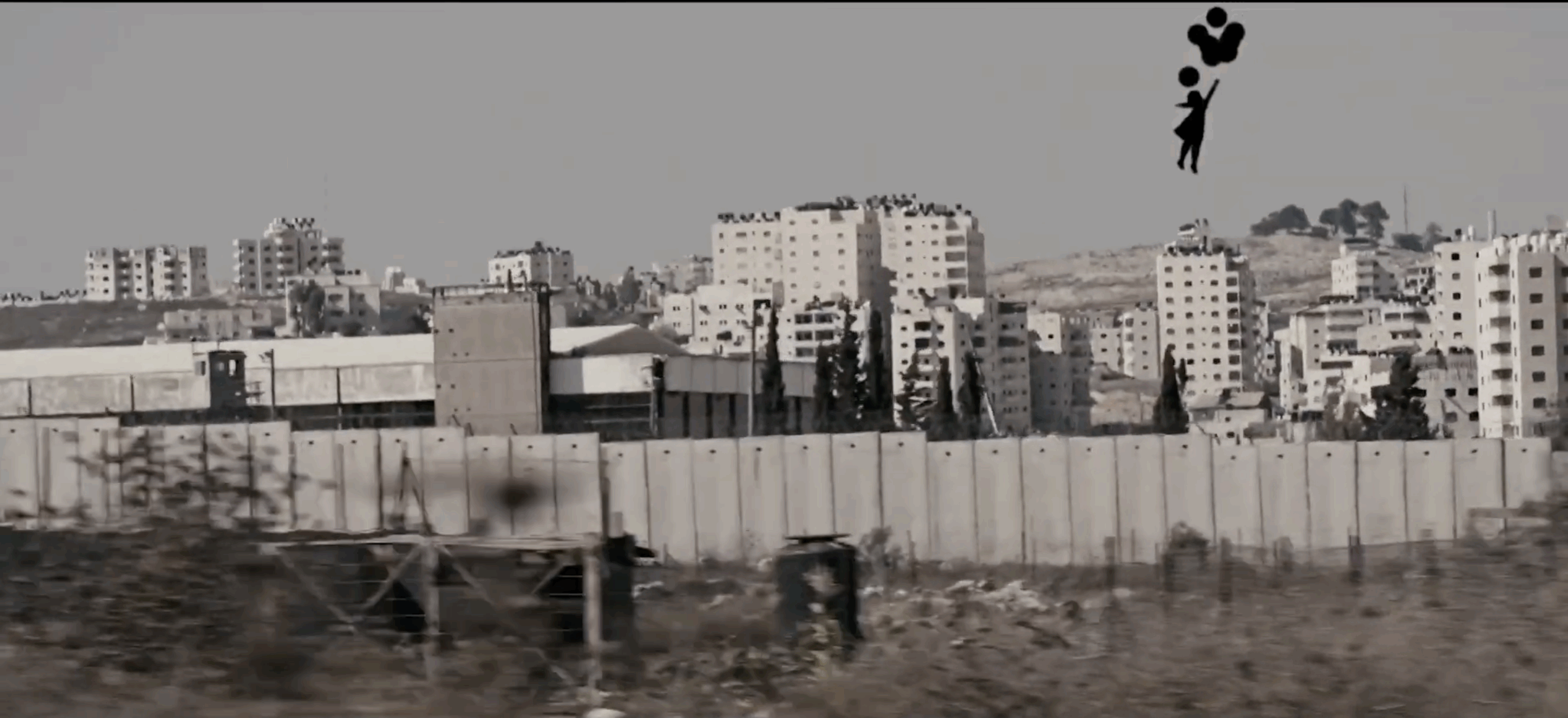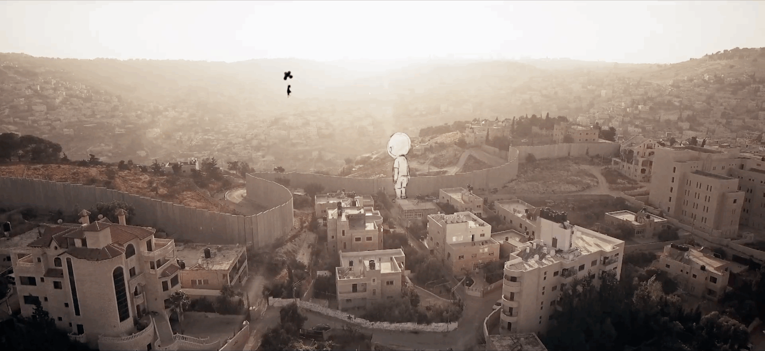 The daily journey the balloon girl takes, witnessing the effects of the apartheid wall, as it separates children from their schools, families from each other and people from their land.