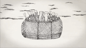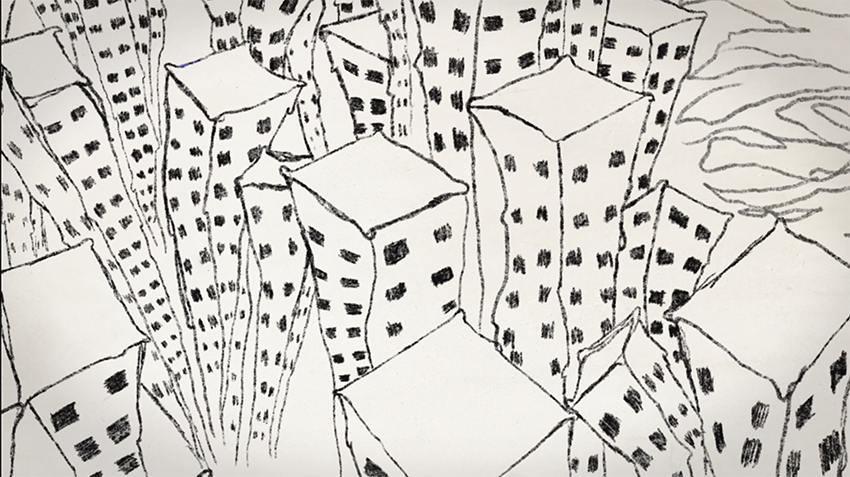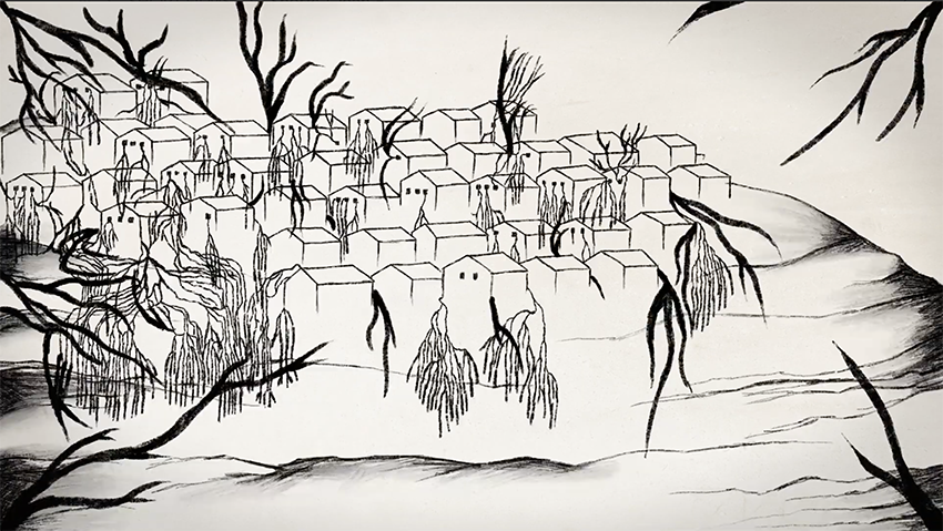 “In a land we call home, a fish navigates the confines of a small glass tank, its eyes fixated on landscapes in the last lines in the glass. Trying to reach beyond, she swims slowly and then in a frenzy towards the illusion of open spaces, only to collide with the transparent barrier. As we venture through the fish’s perspective, the land undergoes surreal events until it becomes an abstracted from within.